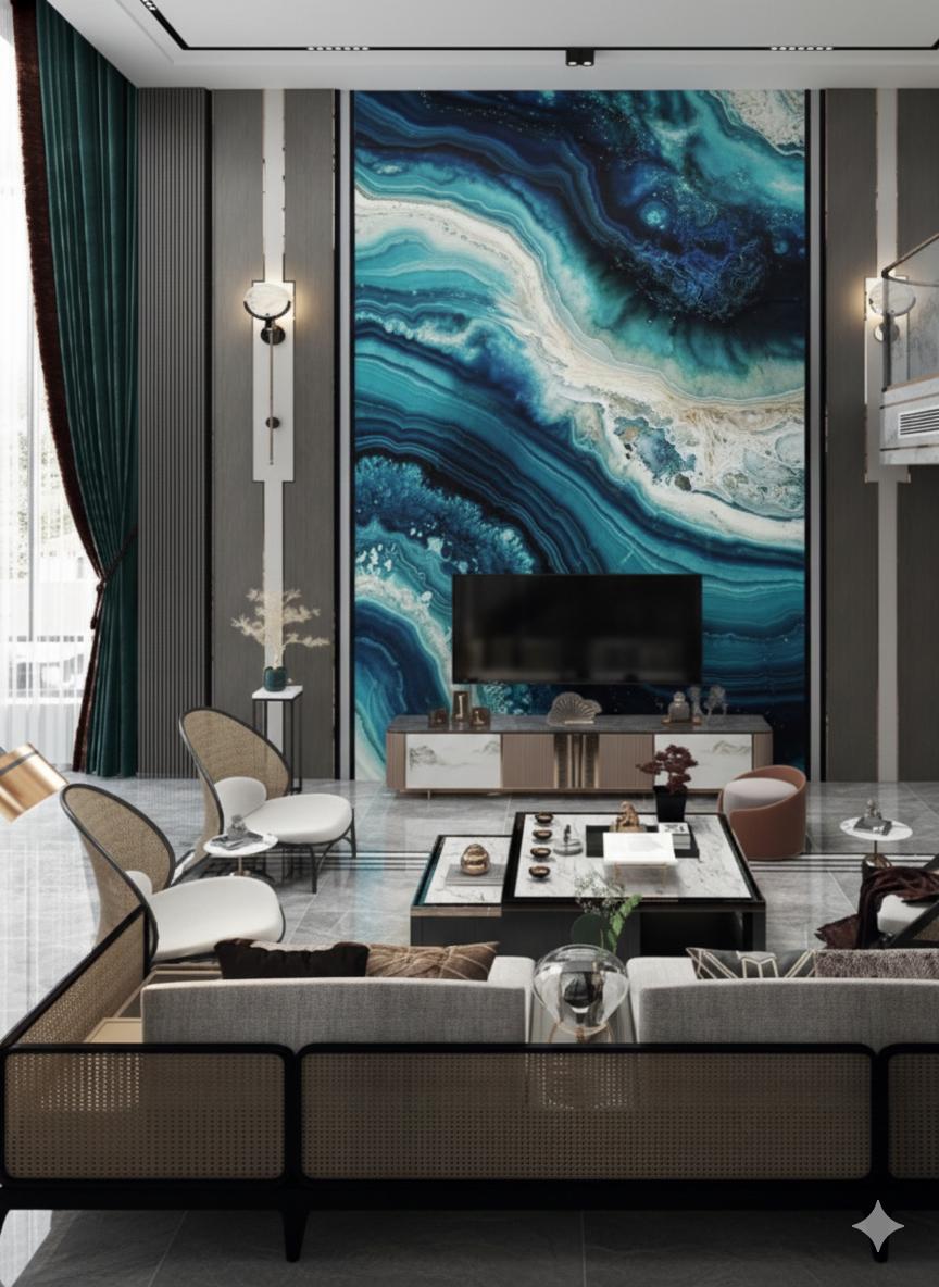 Transform your interiors with the timeless elegance of our beautifully coloured 3D UV Marble Sheet, designed to give your walls a luxurious marble finish without the dullness of ordinary paint. Inspired by natural stone patterns, this sheet features rich blends of deep blues, teals, whites, and earthy tones that create a stunning visual depth and a premium, artistic look.